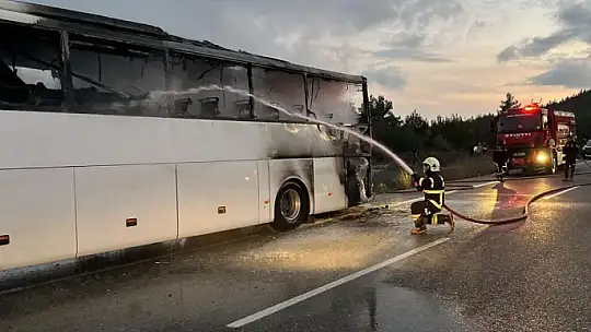 Marmaris Aksaz Deniz Üssü’nde görevli Türk Harb-İş Sendikası personeli ve askeri personeli taşıyan servis otobüsü, Sakar Geçidi’nde seyir halindeyken motor bölümünde çıkan yangın nedeniyle alev aldı.