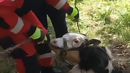 Milas'ın Dörttepe Mahallesi'nde foseptik çukuruna düşen dana, itfaiye ekiplerinin hızlı müdahalesiyle kurtarıldı.