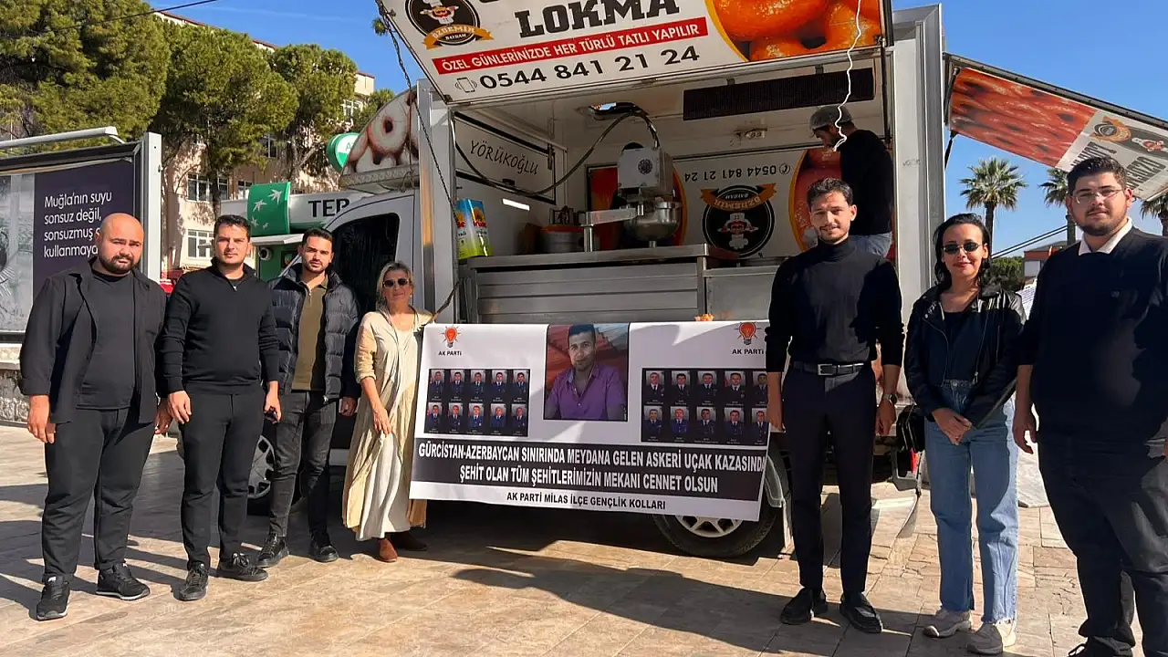 Milas AK Parti Gençlik Kolları, düşen askeri uçakta şehit olan Emrah Kuran başta olmak üzere tüm şehitler için Atapark'ta lokma hayrı düzenledi.