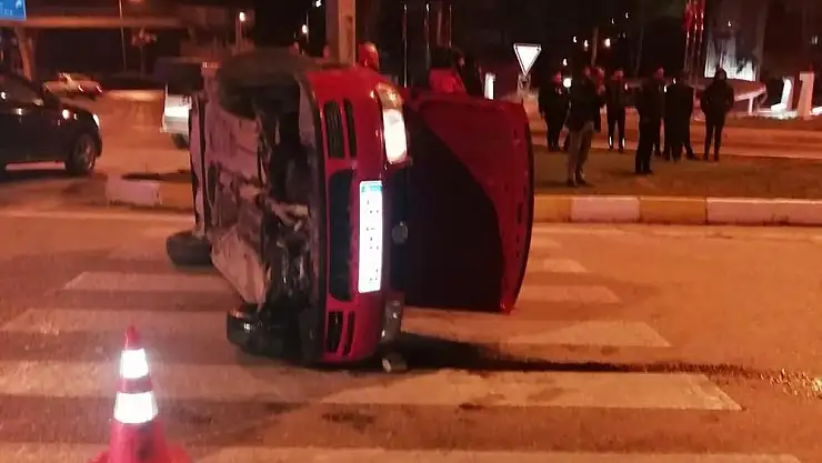 Beçin istikametinden akıllı kavşağa gelen otomobil sürücüsünün hakimiyetini kaybetmesi otomobilin yan yatmasına sebep oldu.