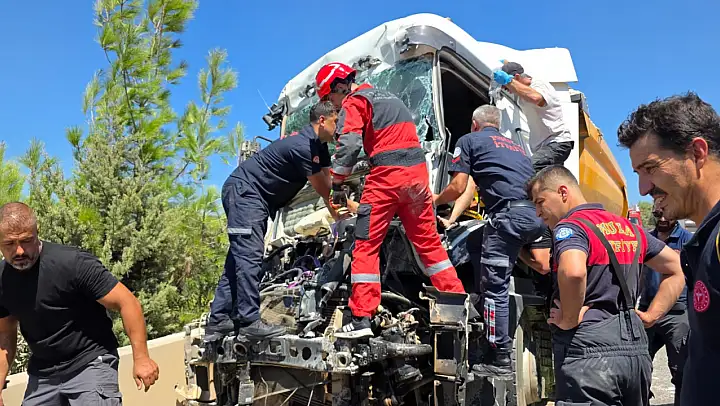 Milas'ta Feci Kaza: Sürücü kabinde sıkıştı, ekipler uzun uğraşlar sonucu kurtardı