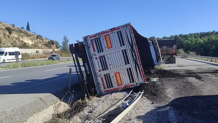 Muğla'nın Milas ilçesi Milas–Söke Karayolu üzerinde, TOKİ evleri olarak bilinen bölgedeki kavşak yakınlarında kömür yüklü bir tır, gece saatlerinde seyir halindeyken şarampole devrilerek kaza yaptı. Devrilen tır, yol kenarındaki demir bariyerleri de altına alırken, araçta ve bariyerlerde maddi hasar meydana geldi.