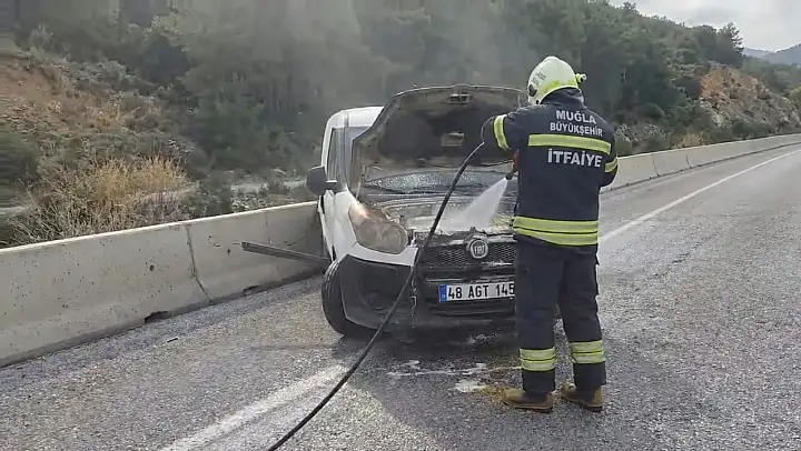 Milas–Yatağan yolunda seyir halindeki hafif ticari araçta çıkan yangın, itfaiyenin hızlı müdahalesi sayesinde büyümeden söndürüldü.