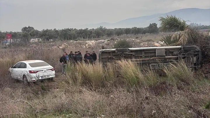 Milas-Bodrum karayolu Koru Mahallesi mevkiinde iki aracın çarpışması sonucu meydana gelen kazada biri tarlaya uçtu, diğeri hasar aldı.