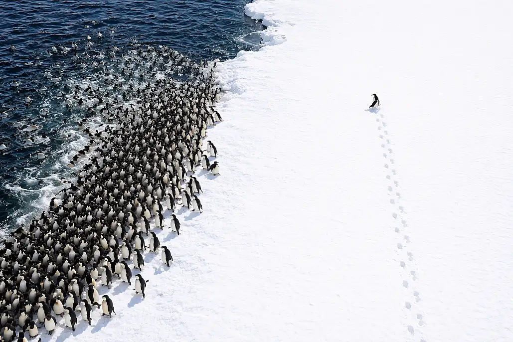 Bazen bir görüntü, binlerce kelimeden daha fazlasını anlatır. Ocak 2026 itibarıyla Instagram ve TikTok akışlarımızı ele geçiren o video da tam olarak böyle. Binlerce Adelie pengueni omuz omuza verip beslenmek için okyanusa giderken, bir tanesi duruyor, arkasını dönüyor ve tek başına, ufukta görünen dağlara doğru yürümeye başlıyor.
