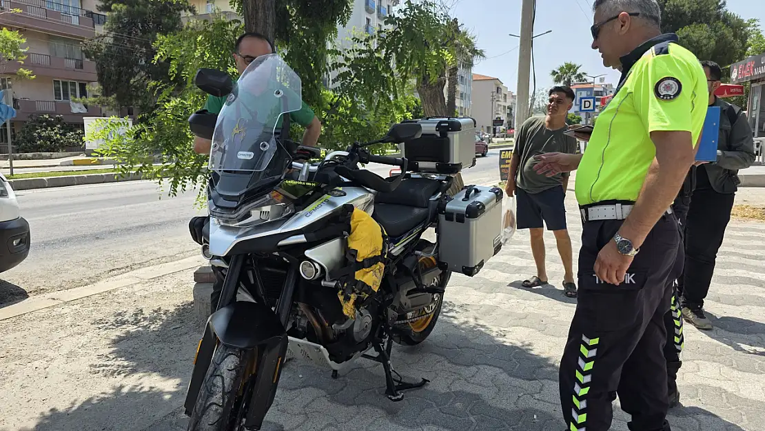 Milas'ta dünya turuna çıkan bir çift, motosikletleriyle seyir halindeyken yola dökülen yağ nedeniyle kayarak kaza geçirdi.