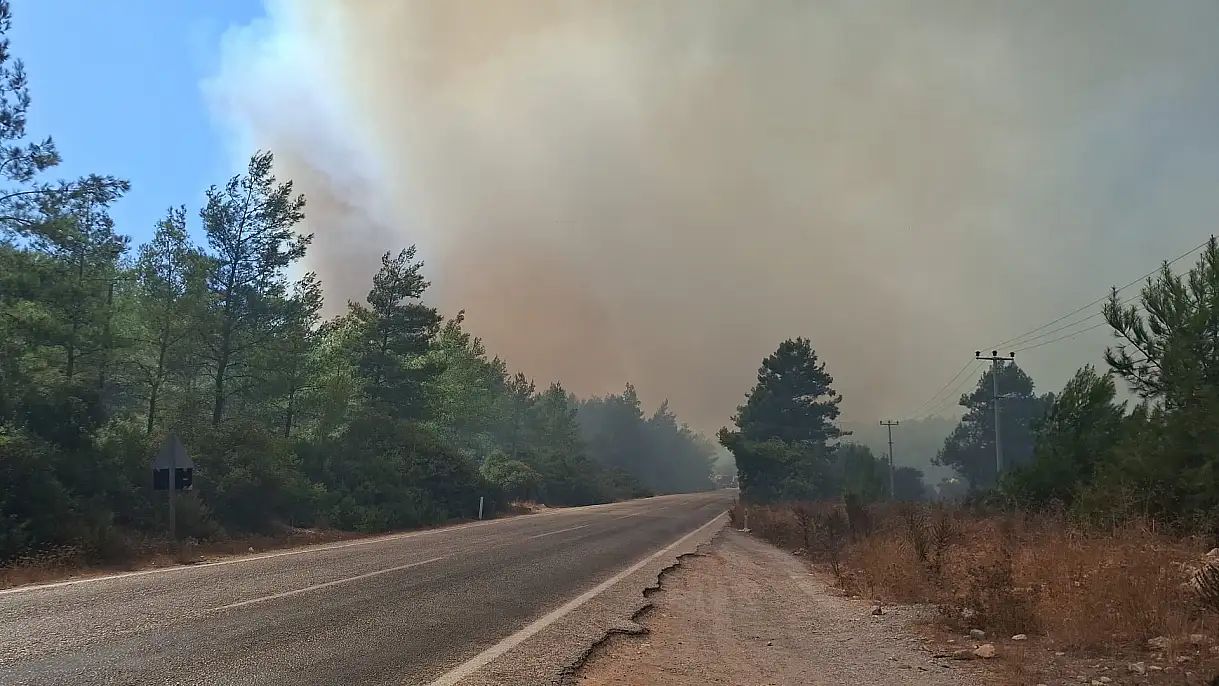 Muğla'nın Bodrum ilçesi Güvercinlik Mahallesi yakınlarında çıkan orman yangınına havadan ve karadan yoğun müdahale sürüyor.