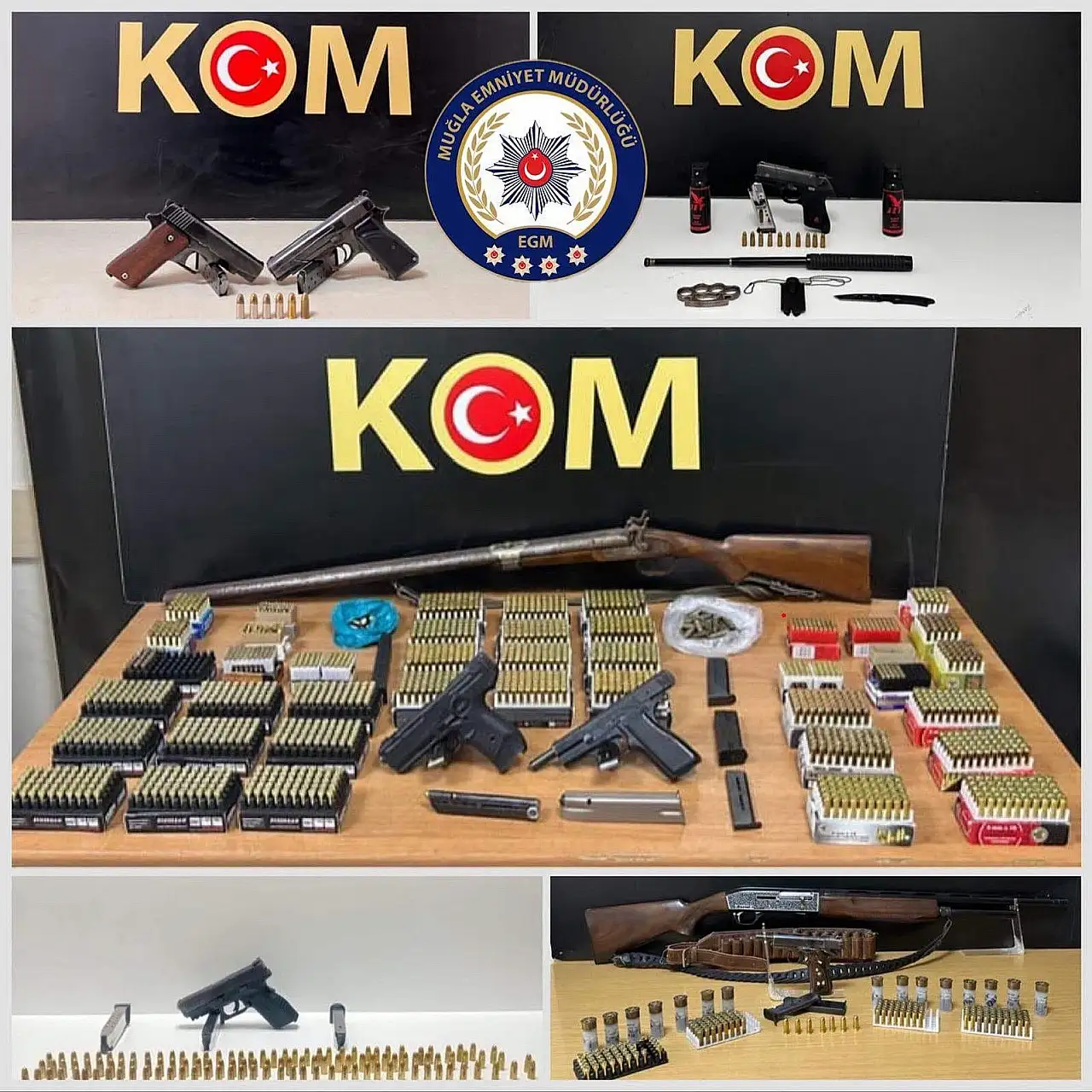 Muğla İl Emniyet Müdürlüğü ekiplerince Bodrum, Fethiye, Marmaris, Menteşe ve Milas'ta düzenlenen eş zamanlı operasyonda 12 şüpheli yakalandı. Baskınlarda çok sayıda ruhsatsız silah, mühimmat ve uyuşturucu madde ele geçirildi.