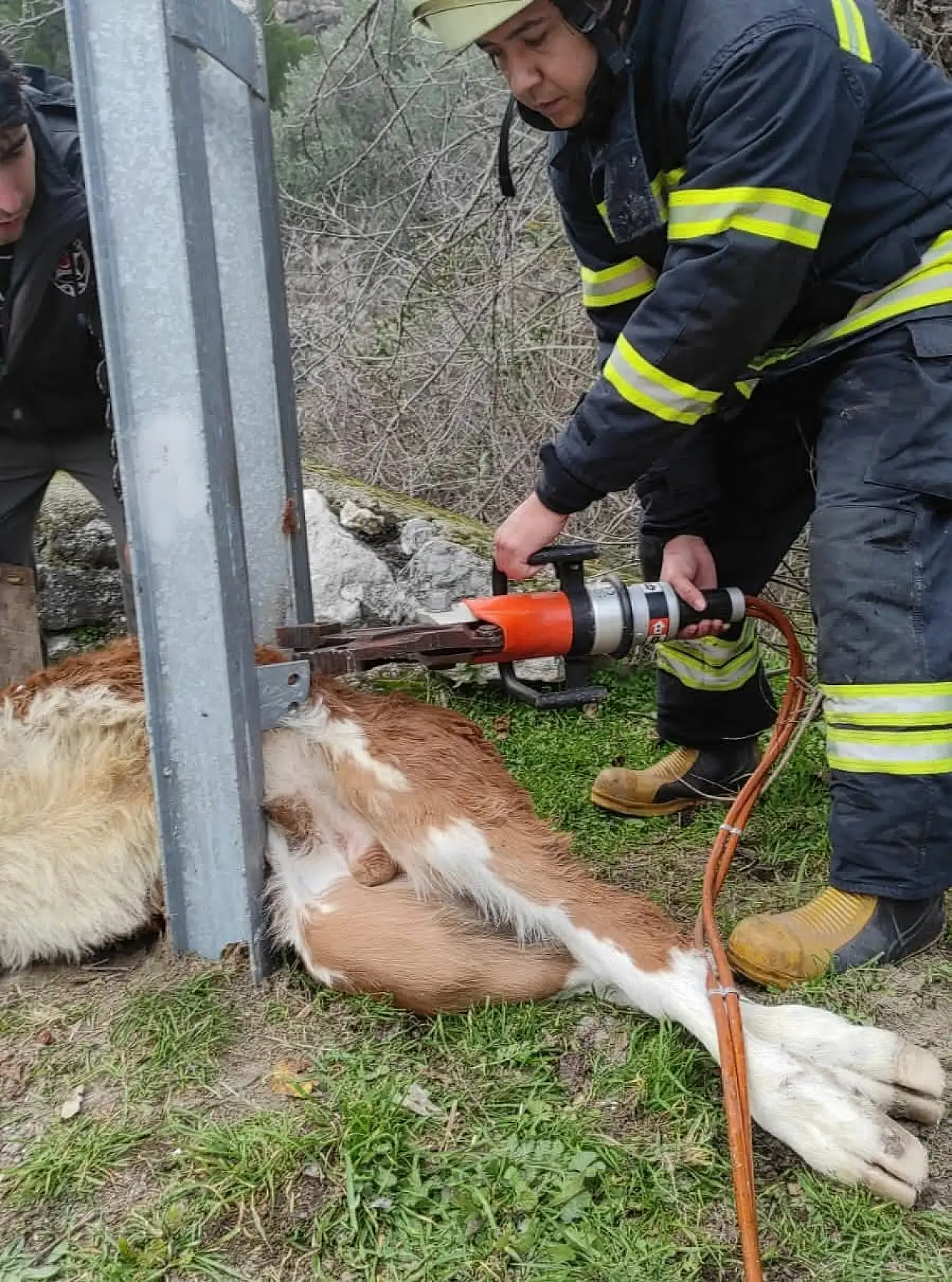İhbar üzerine bölgeye Muğla Büyükşehir Belediyesi Milas İtfaiye Grup Amirliği ekipleri sevk edildi. Kısa sürede olay yerine ulaşan ekipler, korkmuş haldeki buzağıyı sakinleştirdikten sonra kurtarma çalışmasına başladı. Ekiplerin dikkatli ve titiz müdahalesi sonucu buzağı, sıkıştığı dar alandan zarar görmeden çıkarıldı.