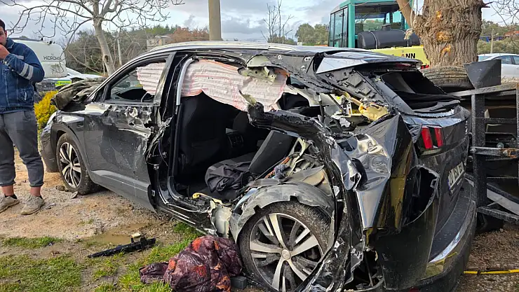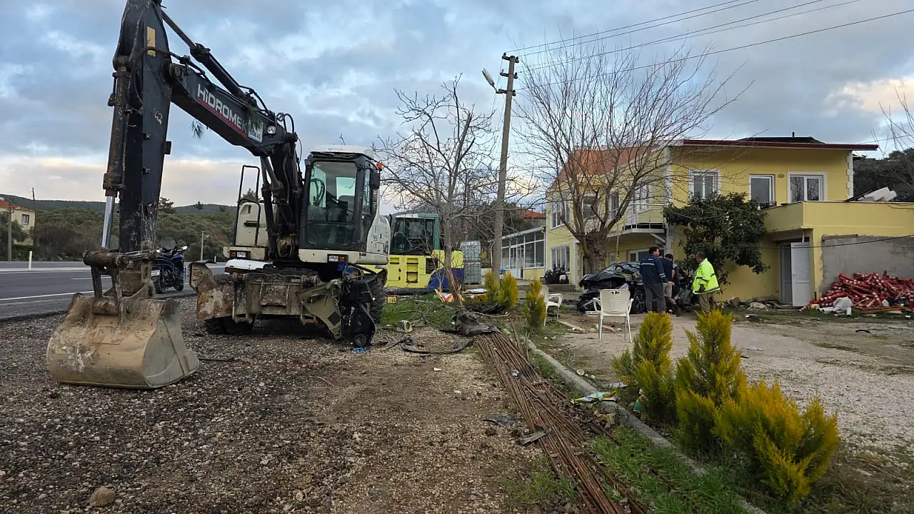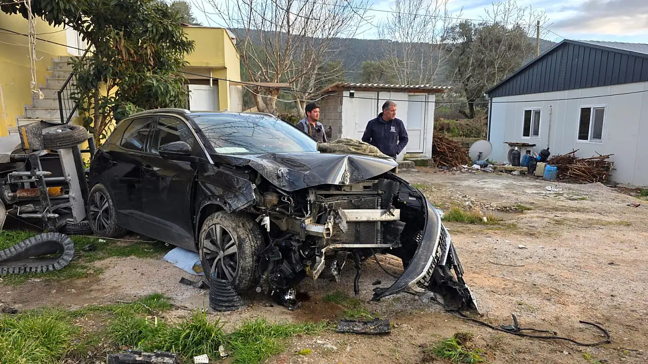 Muğla'nın Milas ilçesinde balık tutmaktan dönen ailenin içinde bulunduğu otomobil, kontrolden çıkarak önce park halindeki iş makinesine, ardından savrularak bir eve çarptı.