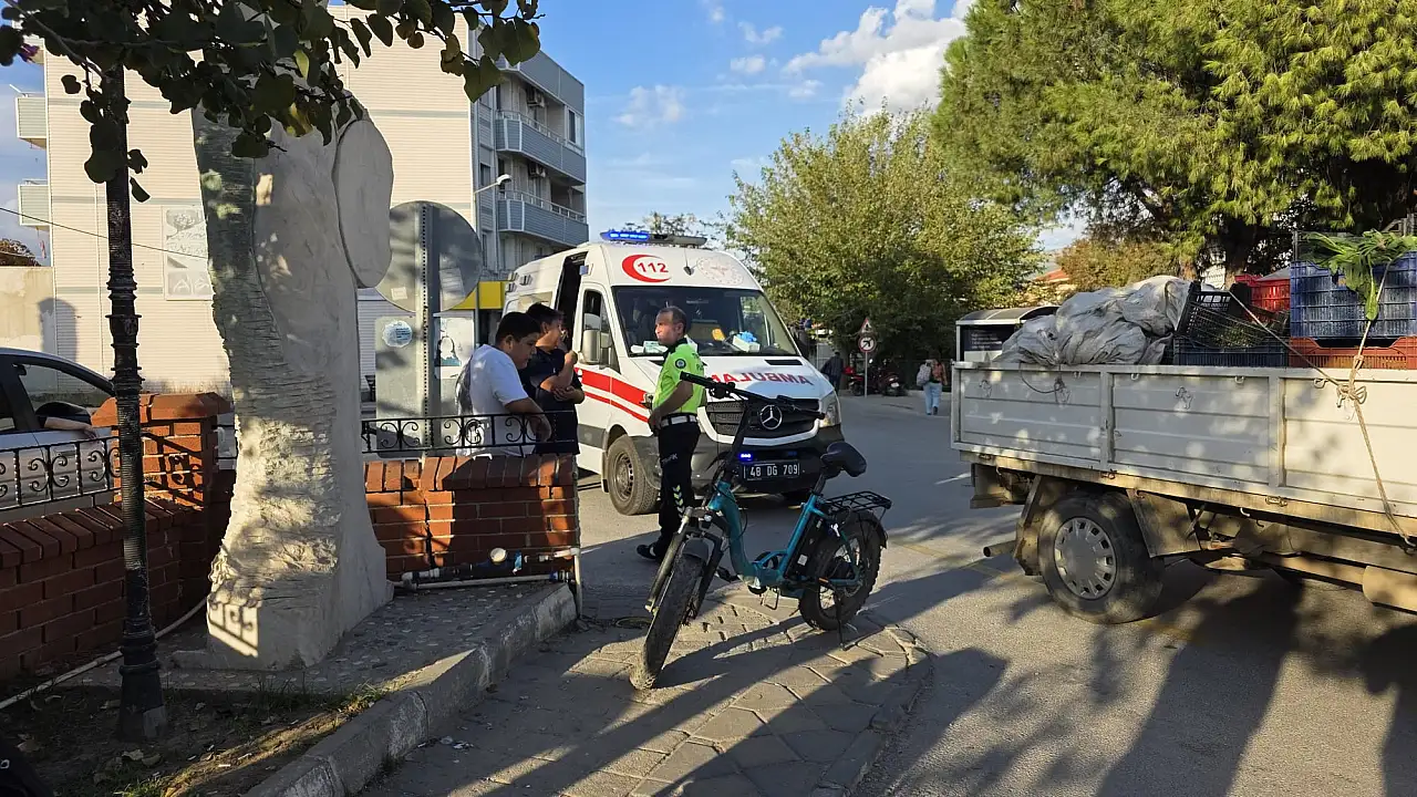 Muğla’nın Milas ilçesi Ahmet Çavuş Hayıtlı Mahallesi Lozan Caddesi üzerinde meydana gelen trafik kazasında, seyir halindeki bir kamyonet yolun karşısına geçmeye çalışan elektrikli bisiklet sürücüsüne çarptı.