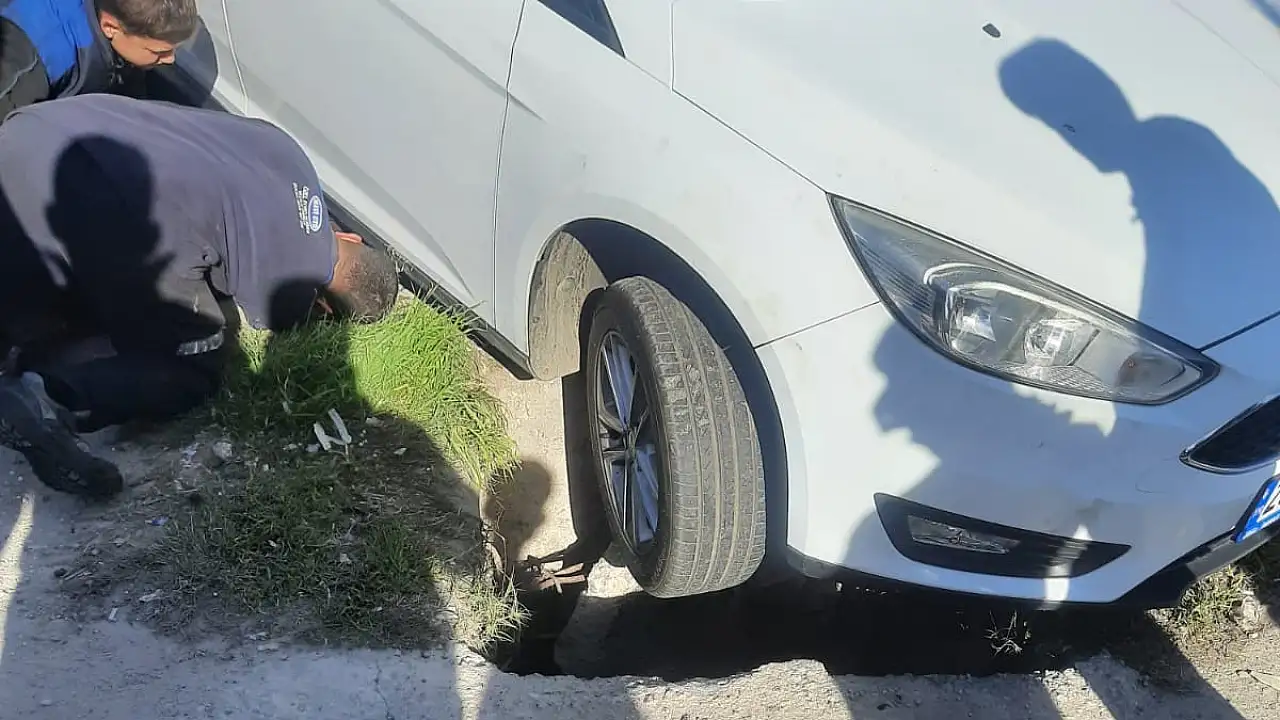 Aracın sağ ön tekerleğinin tamamen çukurun içine girmesiyle araç askıda kaldı. Olay sırasında araçta maddi hasar meydana gelirken, sürücü ve çevredekiler büyük şaşkınlık yaşadı.