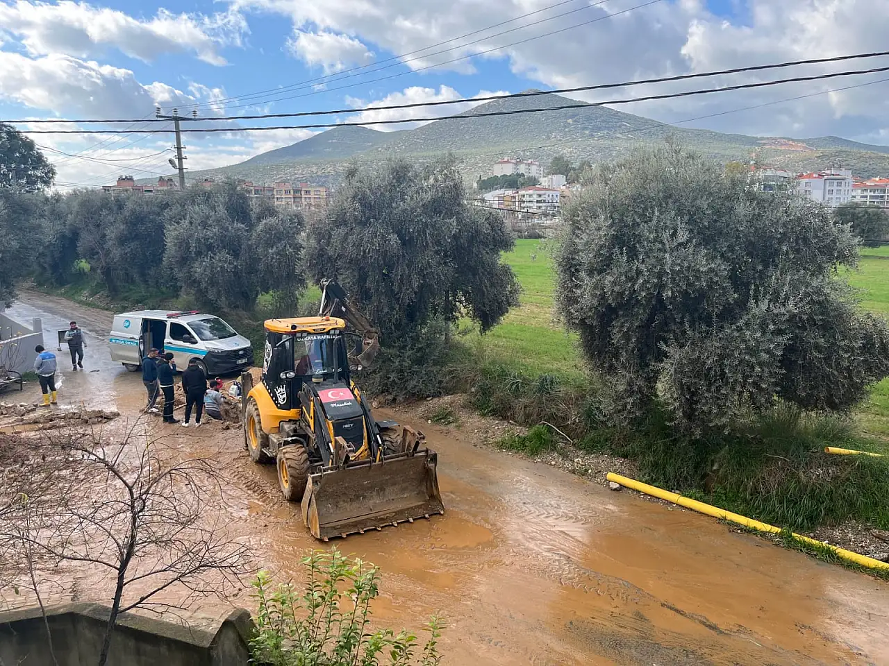 Milas'ta Korkutan Anlar: İş Makinesi Doğalgaz Borusunu Deldi