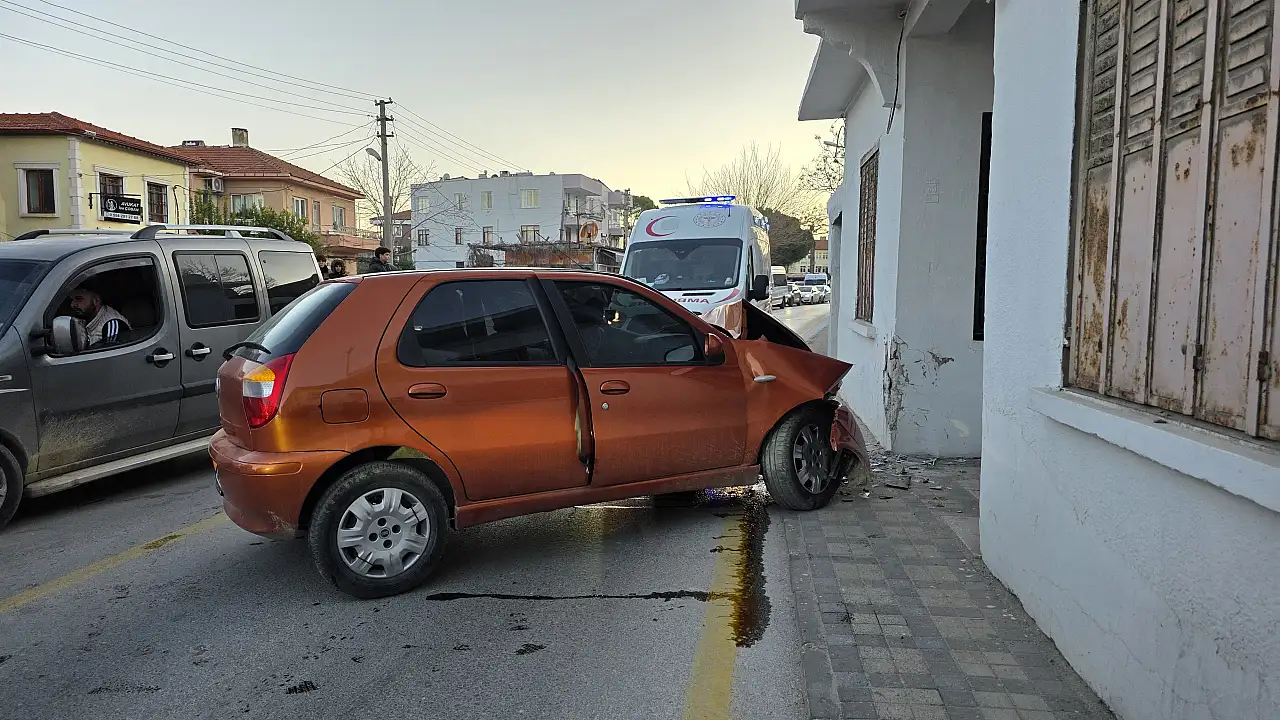 Muğla'nın Milas ilçesinde Doktor İsmail Hakkı Milaslı Caddesi'nden İnönü Caddesi'ne çıkmak isteyen bir otomobil, sürücüsünün kontrolünden çıkarak yol kenarındaki evin duvarına çarptı.