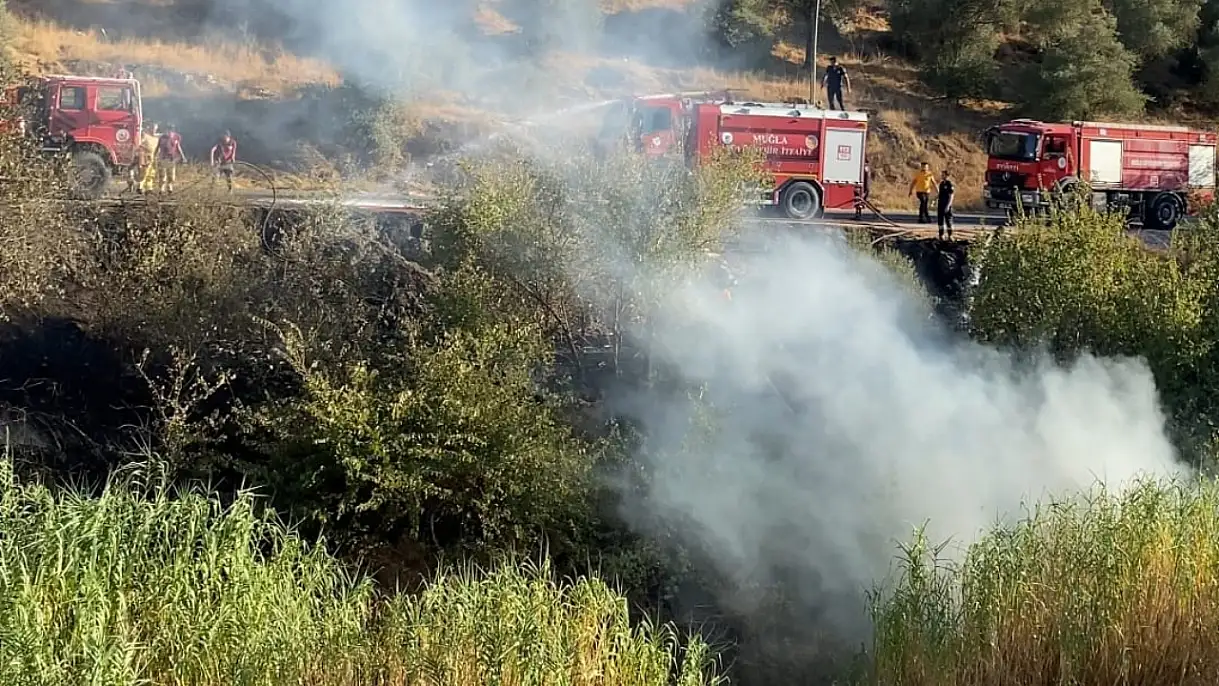 Milas'ta Sarıçay Köprüsü'nde otluk yangını