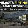 Milas'ta Şiddetli Fırtına Etkili Oldu: Cadde Üzerindeki Ağaç Kökünden Söküldü