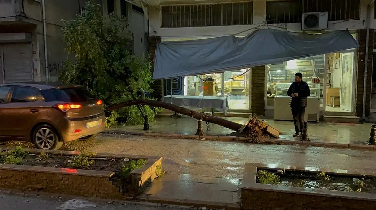 Muğla’nın Milas ilçesinde dün gece saatlerinden itibaren etkisini artıran sağanak yağış ve şiddetli fırtına hayatı olumsuz etkiledi. Fırtınanın etkisiyle Hacı İlyas Mahallesi, Menteşe Caddesi üzerinde bulunan yetişkin bir ağaç, rüzgarın şiddetine dayanamayarak devrildi.
