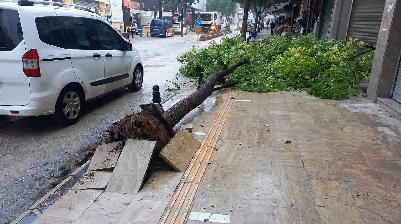 Ağacın devrilmesiyle kaldırımda hasar oluşurken, caddede trafik akışı kontrollü olarak sağlandı. Vatandaşlar, fırtınalı havalarda ağaç ve direk devrilmelerine karşı dikkatli olunması konusunda uyarıldı.