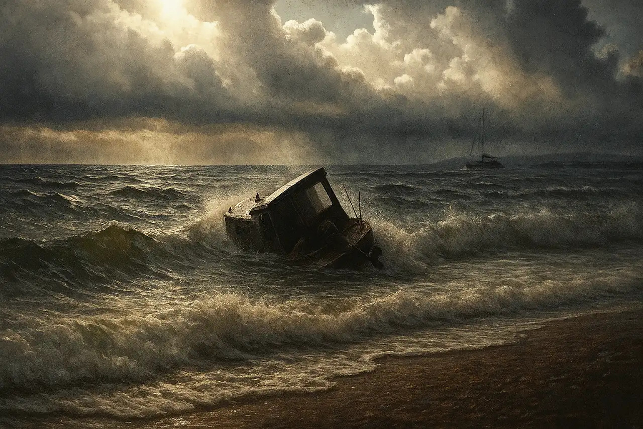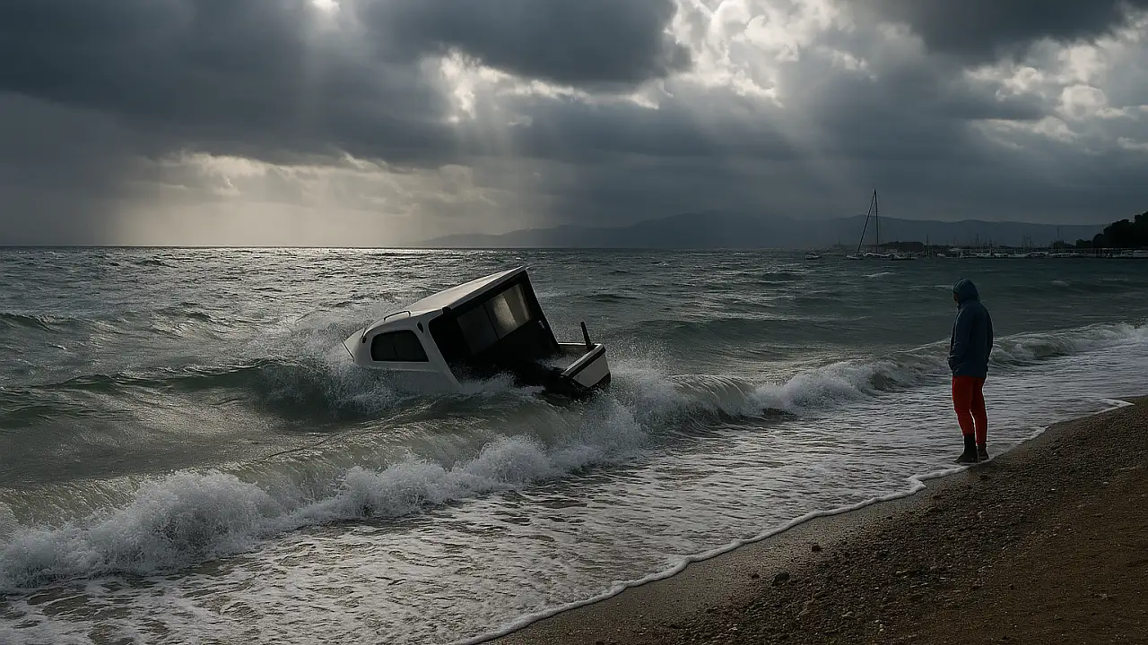 Muğla'nın Milas ilçesine bağlı Ören Mahallesi'nde şiddetli yağış ve fırtına etkili oldu. Kıyıya bağlı bir tekne dalgaların şiddetine dayanamayarak batarken, olay anı vatandaşların cep telefonu kameralarına yansıdı.